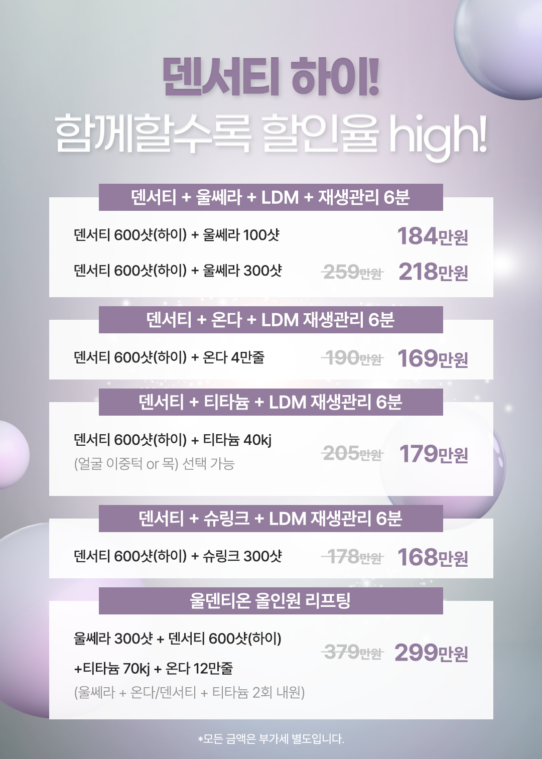 *모든 시술은 부가세 별도입니다.